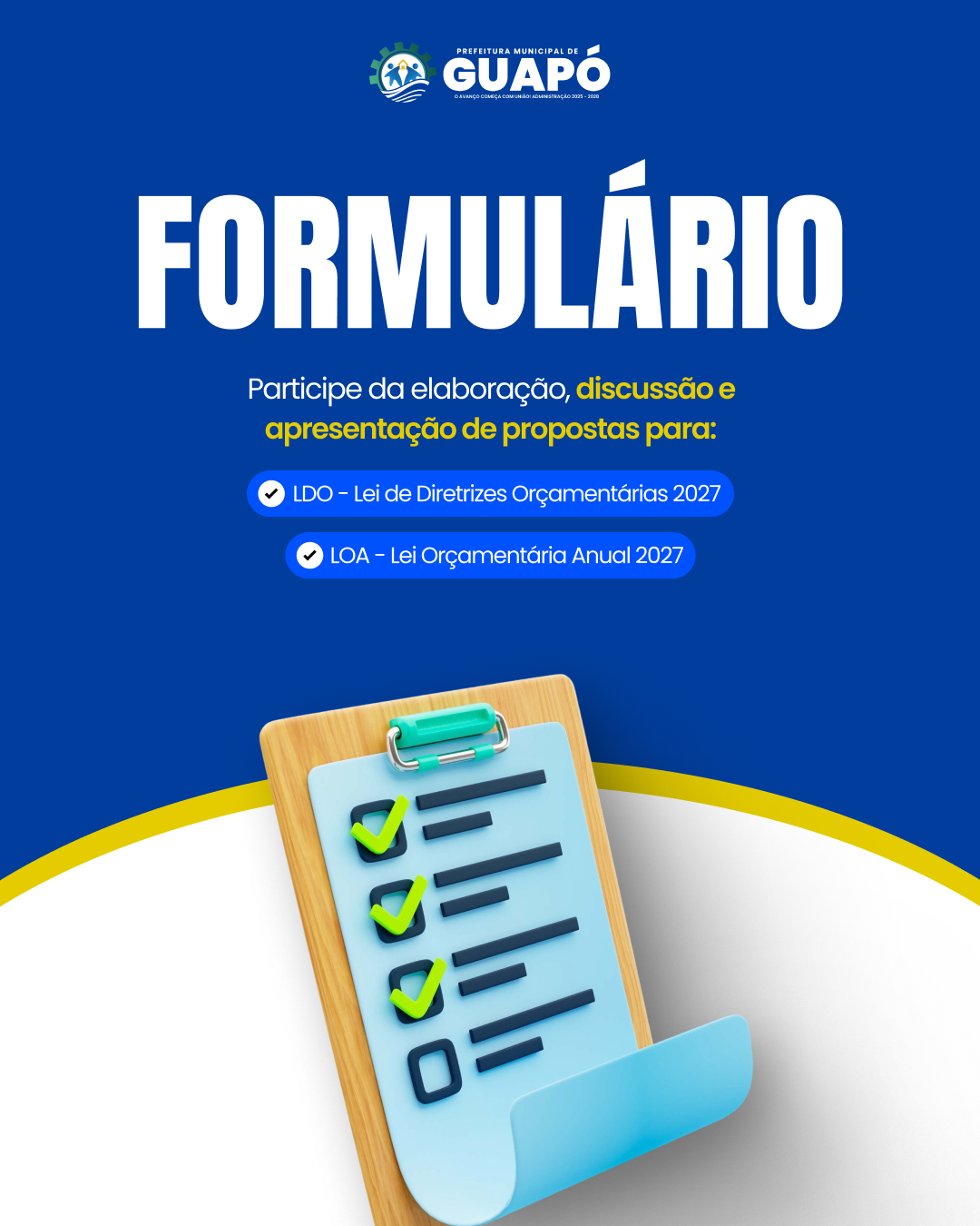 A Prefeitura de Guapó – GO quer ouvir você!