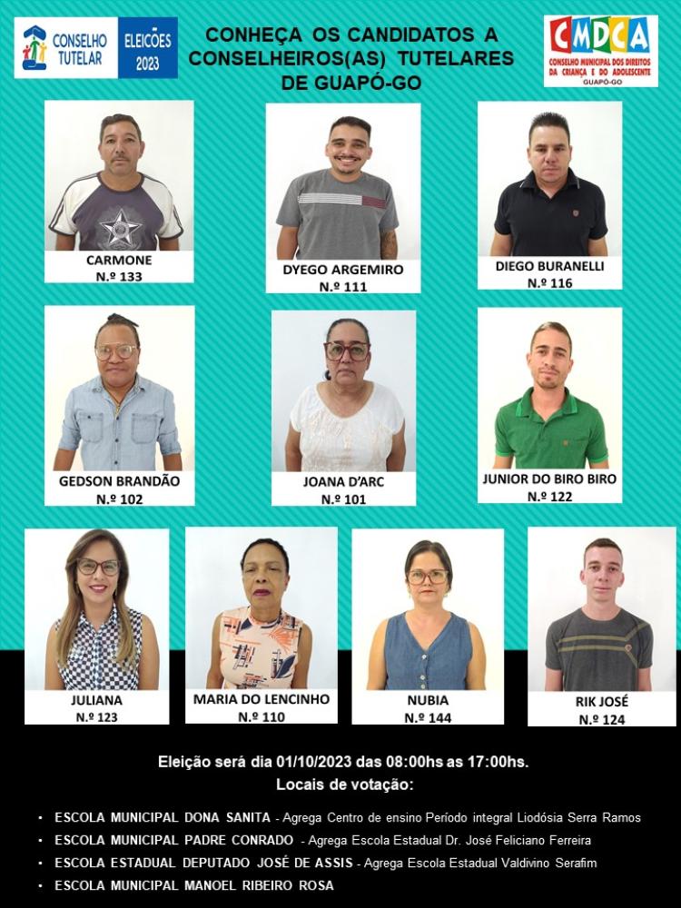 O Conselho Municipal dos Direitos da Criança e do Adolescente – CMDCA de Guapó, comunica a todos que haverá eleições do Conselho Tutelar no dia 01/10, das 08:00hs às 17:00hs.
