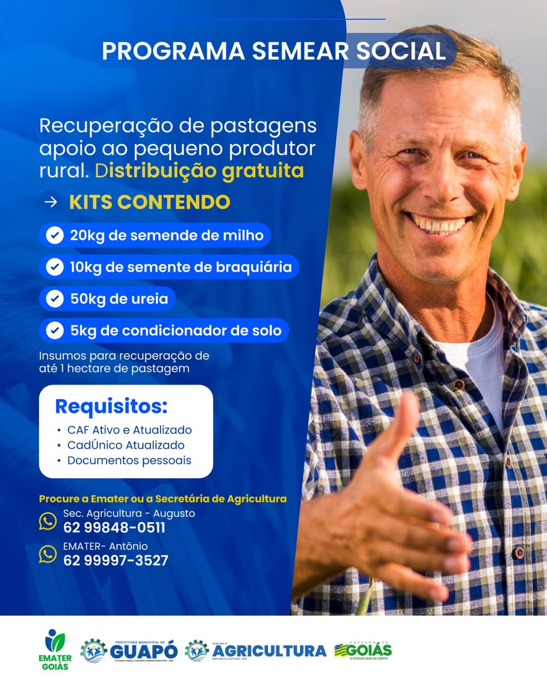 O programa realiza distribuição gratuita de kits com insumos para recuperação de até 1 hectare, fortalecendo a produção e valorizando quem trabalha no campo.